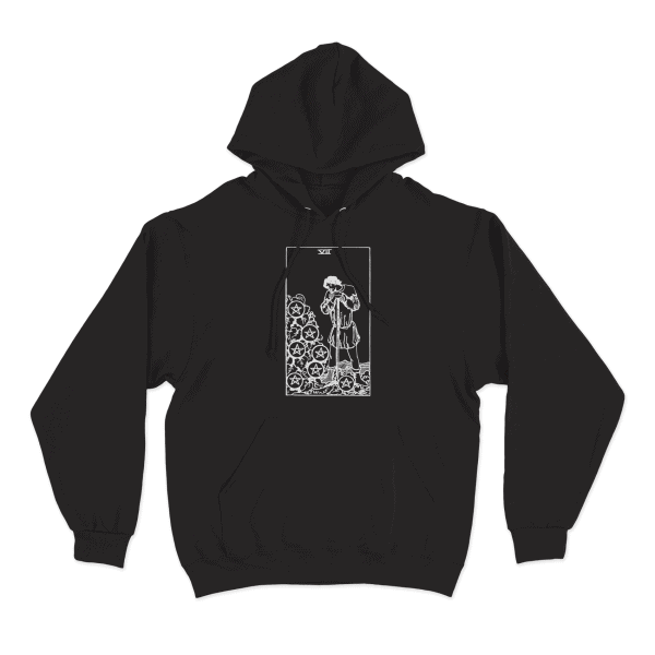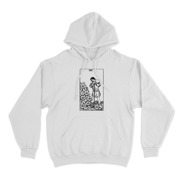 The Seven of Pentacles Hoodie envelops the wearer in a sense of anticipation and perseverance. Illustrated on the hoodie, a figure stands amidst a bountiful garden, tending to the growing plants with dedication and care. This imagery represents the act of patiently waiting for one’s efforts to yield results and the anticipation of future success. This hoodie is perfect for individuals who understand the importance of hard work and persistence in achieving their goals. It serves as a reminder that success often requires patience and perseverance, but the eventual rewards are worth the effort.